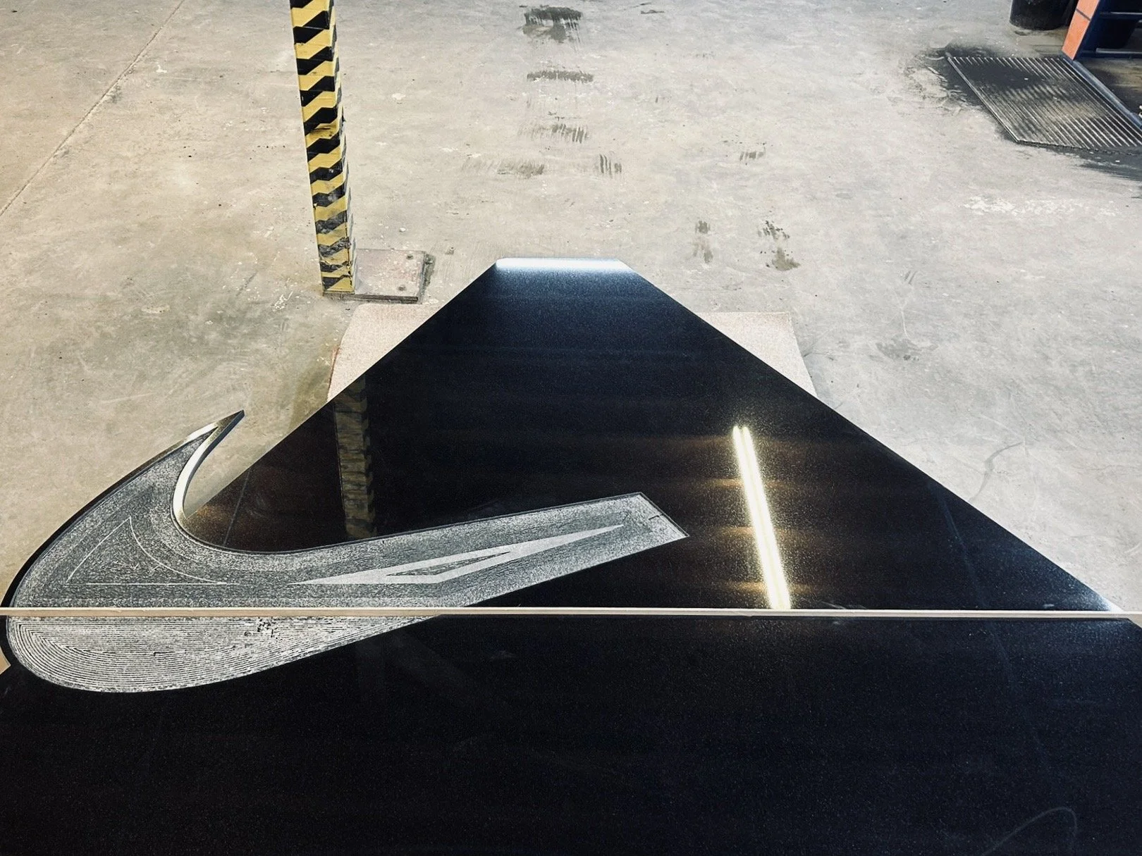 Working with @betongpark, We helped created this custom black granite logo featuring a brushed stainless steel @nike Swoosh set perfectly into the stone — a clean mix of craftsmanship, precision, and timeless design.