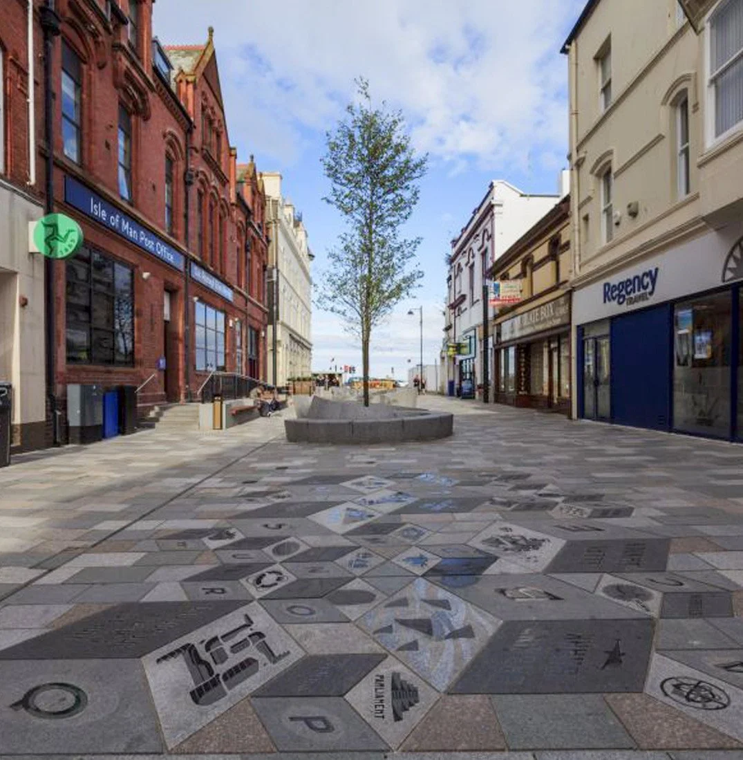 Working closely with Hardscape we helped create the tiles for the Regent Street, Douglas, Isle of Man scheme. The concept was inspired by Archibald Knox, a Manx designer who pioneered the Arts and Crafts Movement, Celtic Revival, Art Nouveau, and Modernist movements.